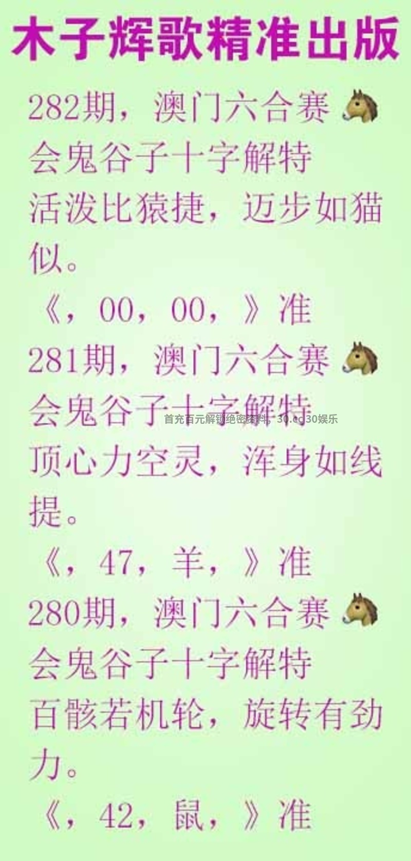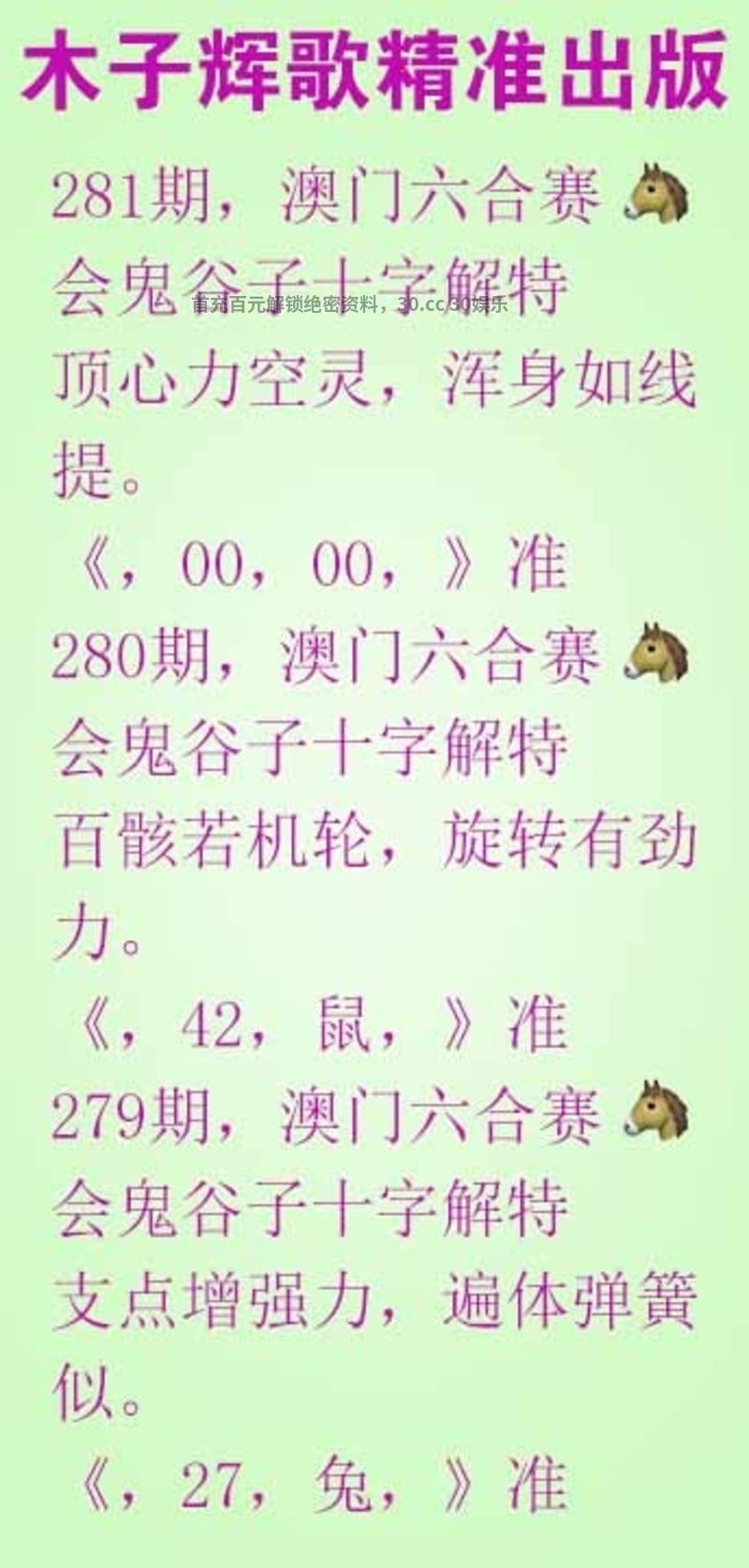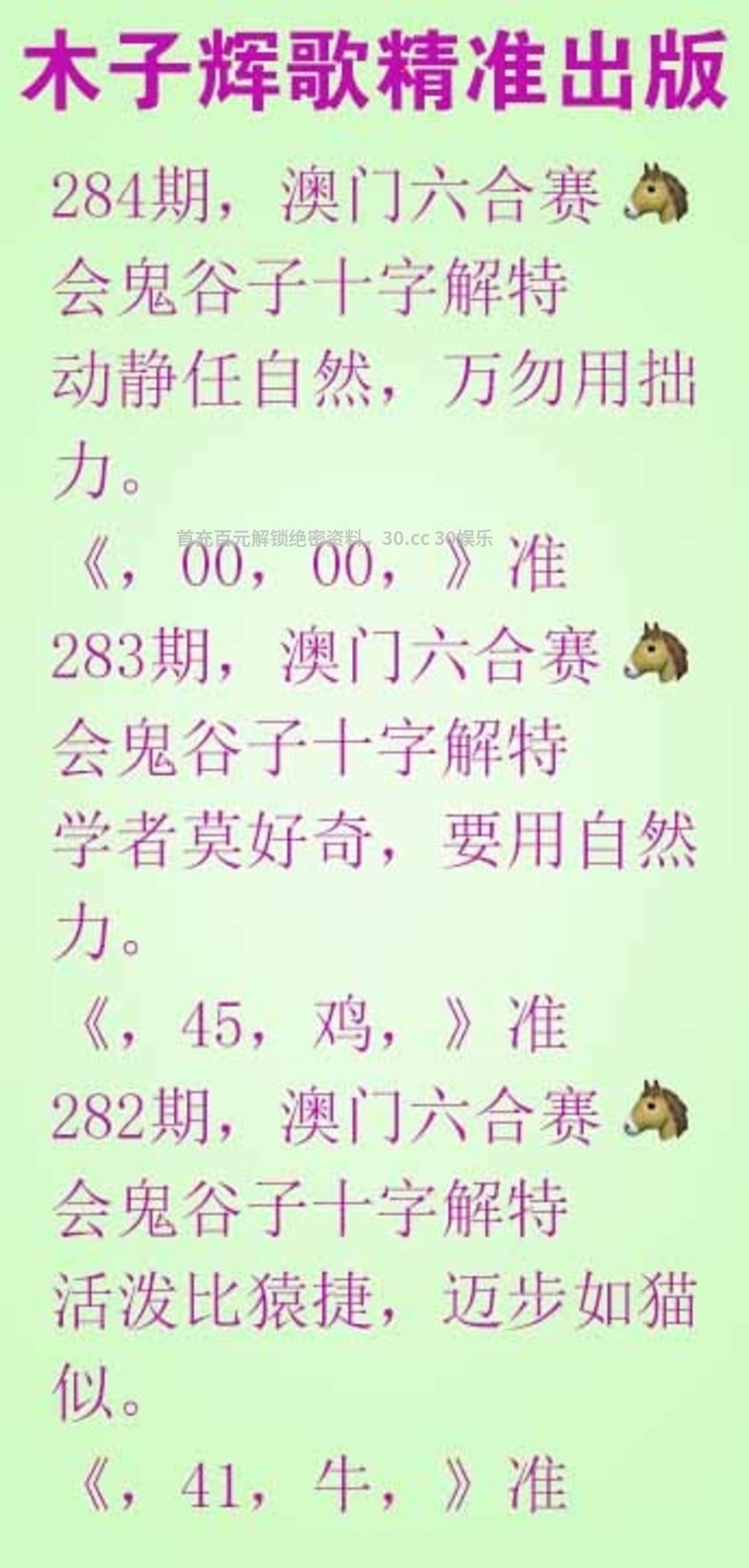 284期:♣天地中特♣天天天♣开:牛41中 285期:♣天地中特♣天天天♣开:马24中 286期:♣天地中特♣地地地♣开:發00中 天肖:牛猪猴马龙兔 💥 地肖:虎鼠狗鸡羊蛇 庄家怕了,密料大放送!(9715888.com) 澳门木子辉歌《五段中特》9715888.com