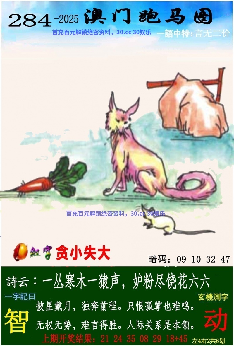 285期:绝杀两尾☠3尾9尾☠开:马24准